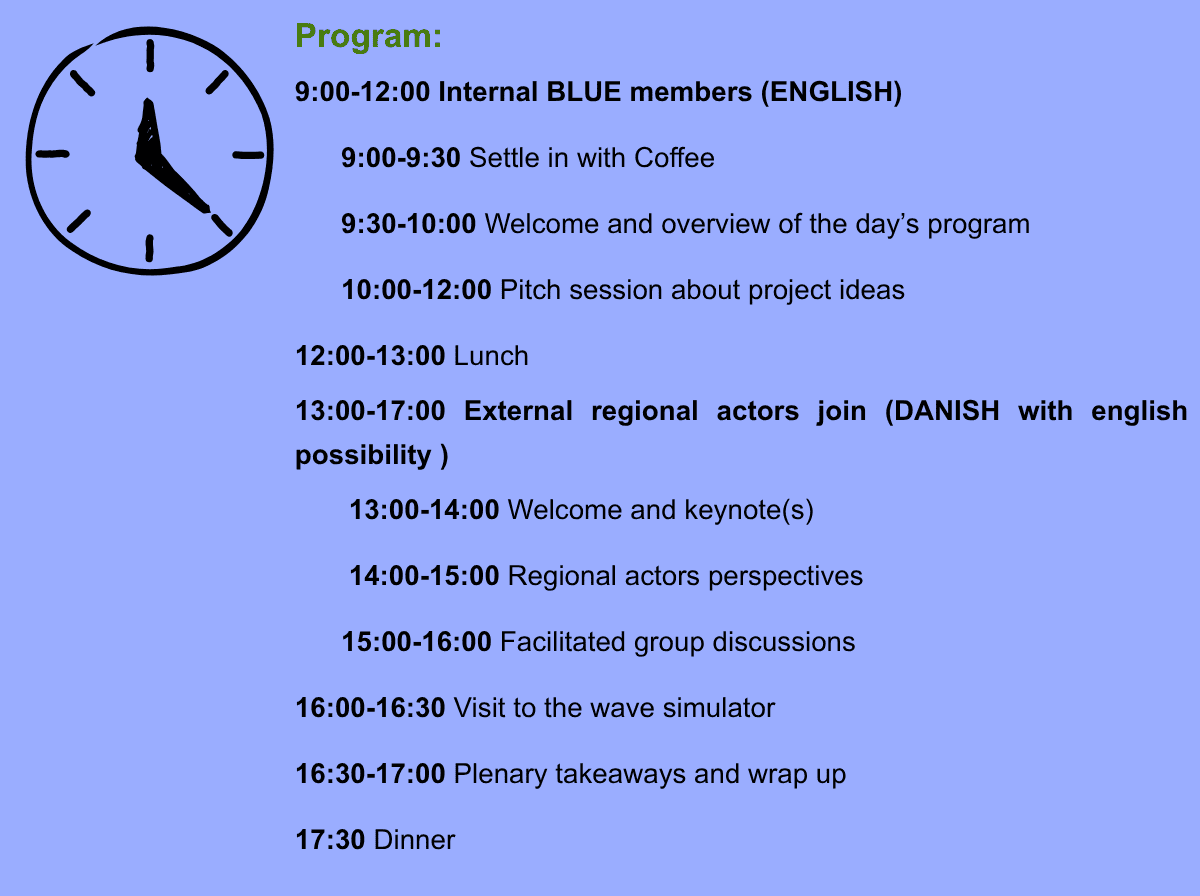 Language: The morning session, which primarily will involve AAU BLUE members, will be held in English, while the afternoon session, to which regional external stakeholders have been invited, will be held in Danish (with english possibility).